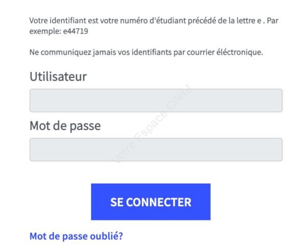 - Identifiant : la première lettre de votre prénom suivie de votre nom de famille, sans espace ni point, en minuscules